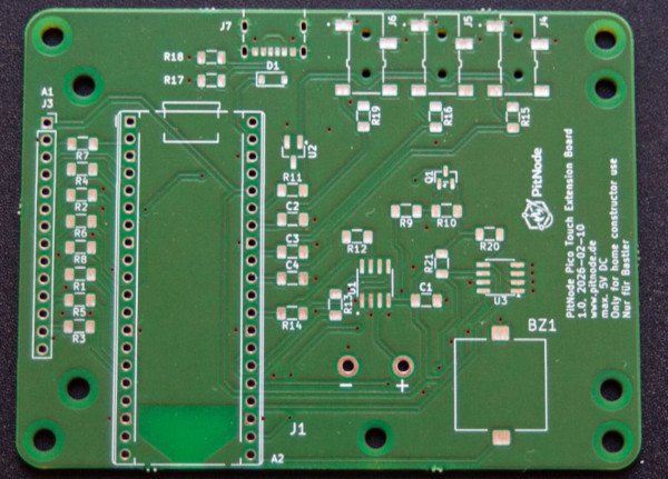 The PitNode Pico Touch Extension Board (PitNode PTEB) is intended as a DIY developer board for hobbyists and makers. Assembly and use are at your own responsibility.